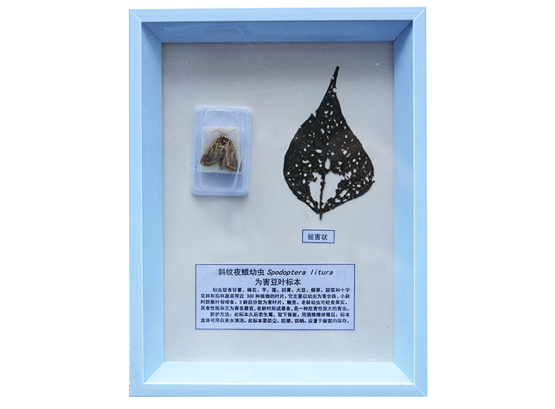 斜紋夜蛾幼蟲危害豆葉標本